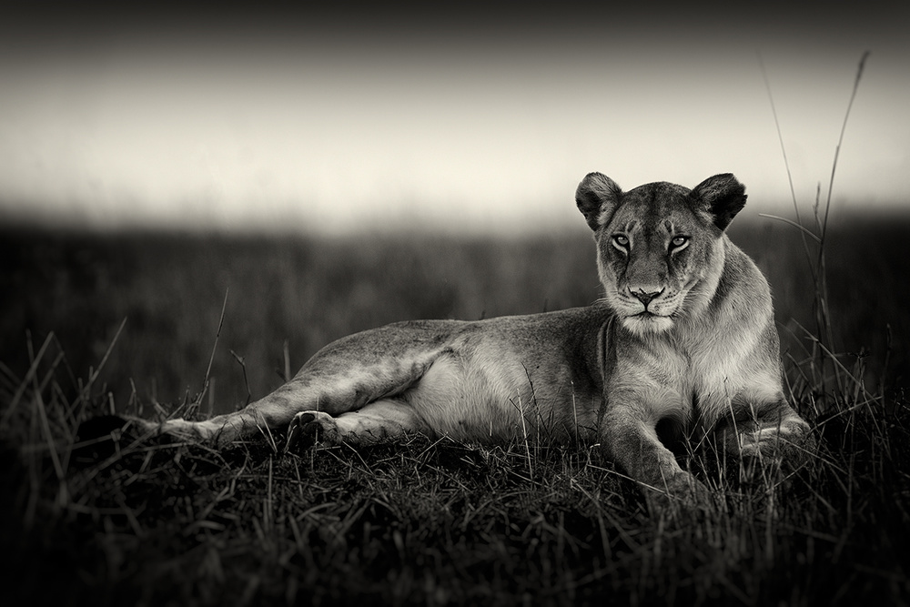 The majority of my work is photographed in Masai Mara, Kenya. The kingdom of lions. The Mara is well known for its large lion population and also offers magnificent vistas and varied areas for photography, from the short grass and marshes in the north to the mountain ranges and tall grass in the south.  I also prefer to photograph during rainy or stormy weather conditions. It adds a bit of drama to the scenes that I like.