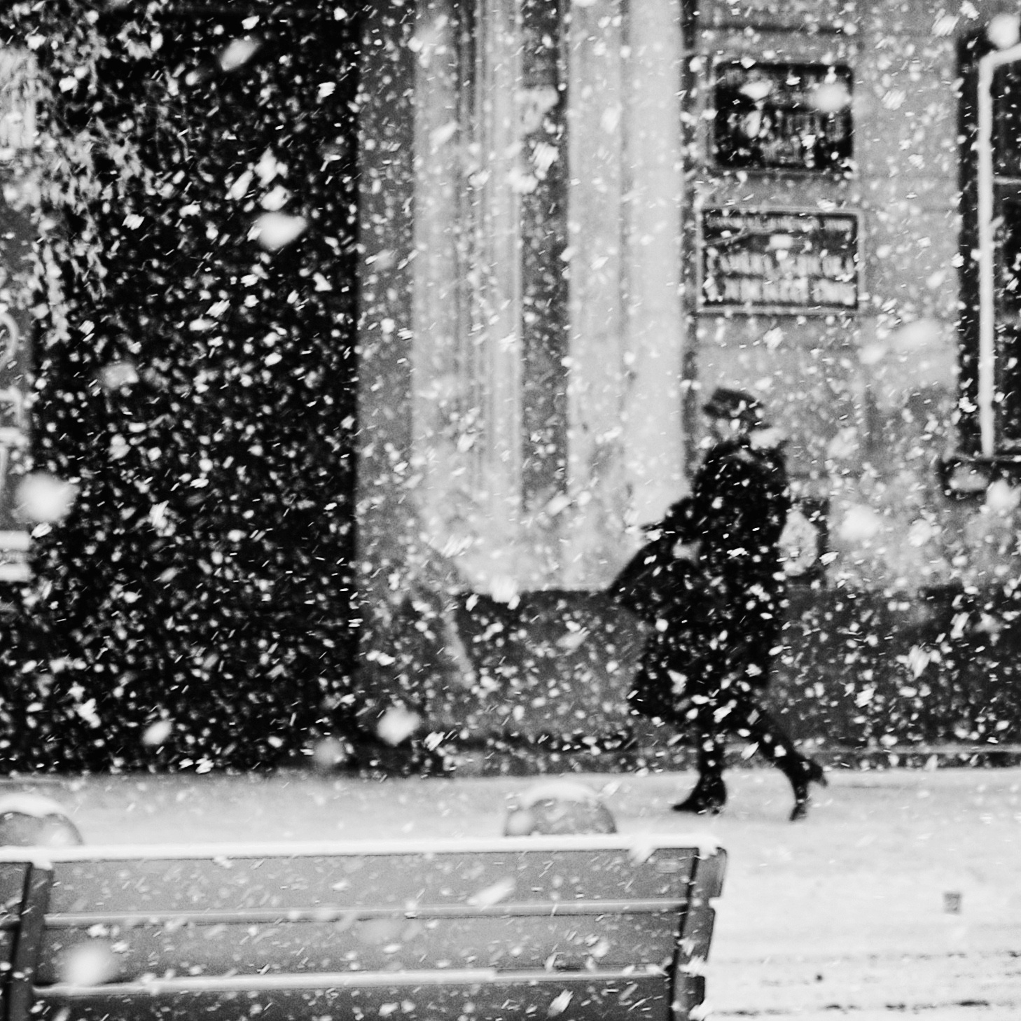 Urban photo excursions are far less complicated or risky in winter. It could be as simple as a walk to the subway station or street car on a snowy day or finding a street light or a lamp post at night to light a black and white composition or silhouetted figure. Directional light and falling or blowing snow add drama and mood to an otherwise uninteresting winter urban scene.